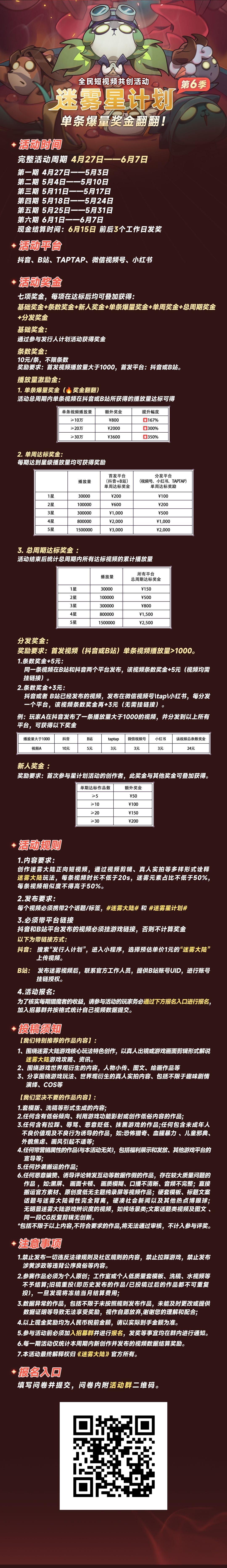 迷雾星计划第六季开启-单条爆量奖金翻翻!