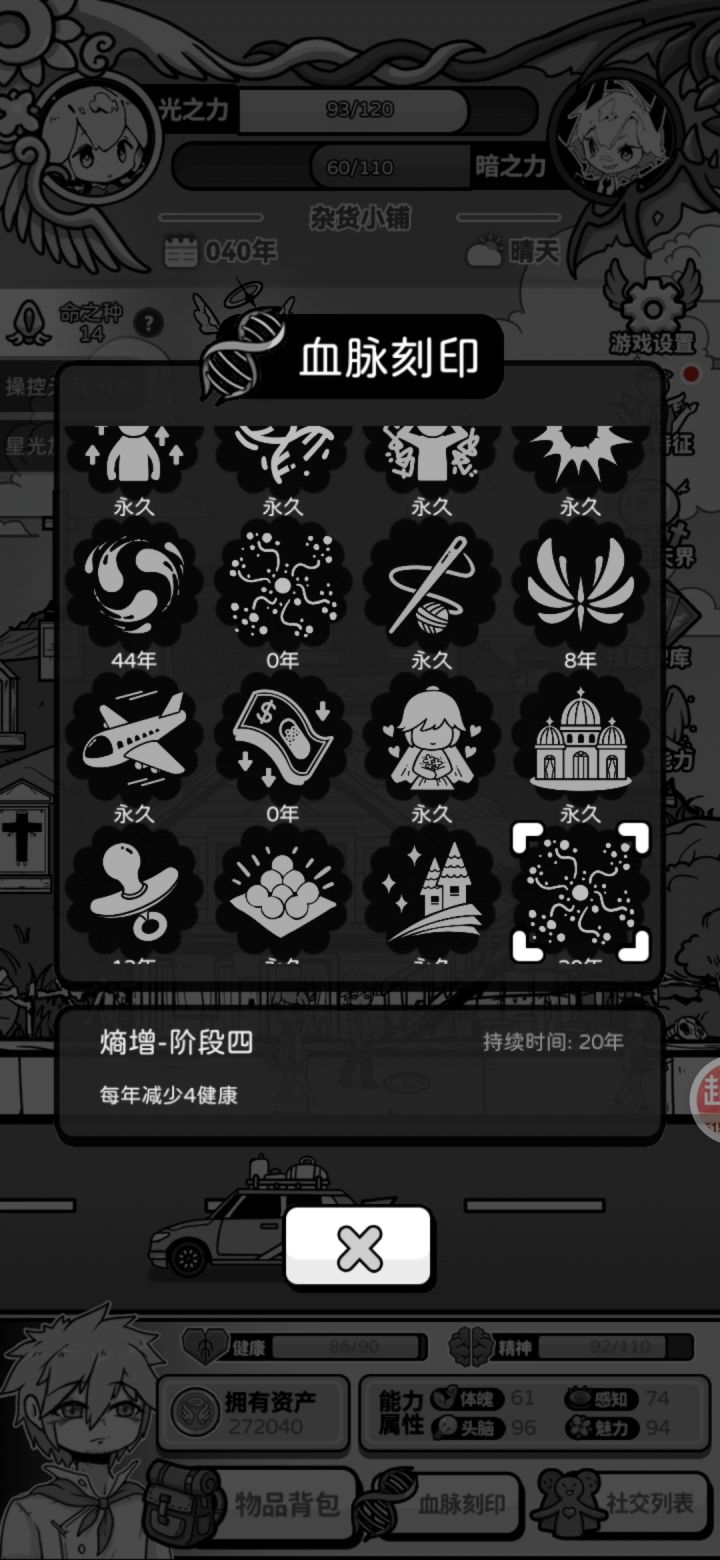 首先是基因缺陷修回去了,其次是熵增数值的变化,前四个熵增数值调回了一点,但熵增三与熵增四时间变长,一来一回相当于没变化,熵增五还是老样子,永久不说还是扣六点。母亲买药的钱多了每年两百与两年时间。