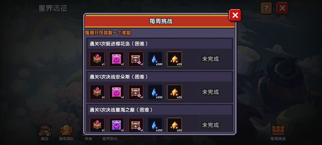 团本:每周两次困难星海岛必打!第一次可以领取每周奖励,有自选魔神石!
