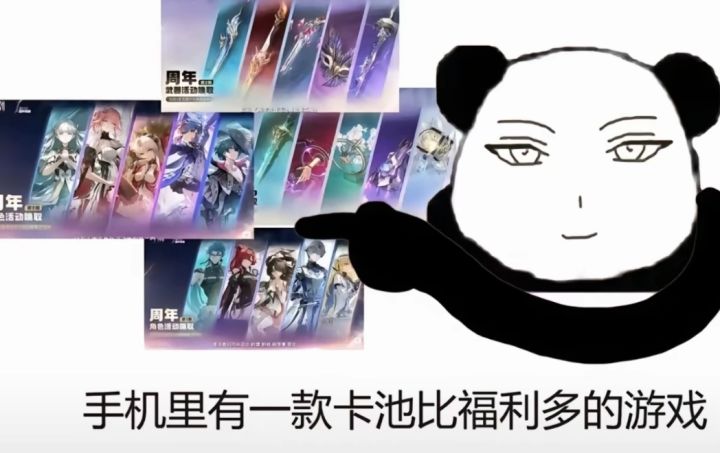 其实复刻池子这个玩意儿,好多游戏都会弄的,都到周年庆了,那肯定要让所有喜欢游戏角色的玩家都能开心,你怎么开心的?要么补命座,要么抽专武,要么抽本体,那如果一个个复刻的话肯定不行,那么就会出现类似于一个自选复刻的东西,但所有游戏都没有被喷,唯独就鸣潮被喷了