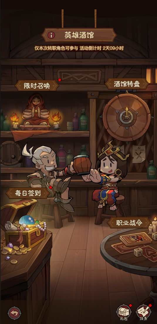 该活动主要由酒馆转盘和限时召唤2个部分组成。在活动中,通过完成指定任务能够获得大量奖励、酒馆银币和限时卷轴,使用道具可以参与酒馆转盘和限时召唤两个玩法。