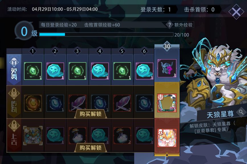 活动内容:活动期间,每日登录或击杀首领可获得经验;提升徽记等级。免费徽记默认开放,传奇徽记和上古徽记需购买解锁。徽记达到对应的等级,可领取对应档位的奖励。免费徽记可获得“勇士英魂”、“次元碎片”、“随机英雄”等好礼;传奇徽记可获得“传奇英魂”、“次元碎片”、“神祗碎片”、“限定动态头像框[星魂璀璨]”等好礼;上古徽记可获得“幻彩之尘”、“新英雄[狼裔暴君]的专属皮肤[天狼星尊]”以及皮肤专属头像等豪礼。