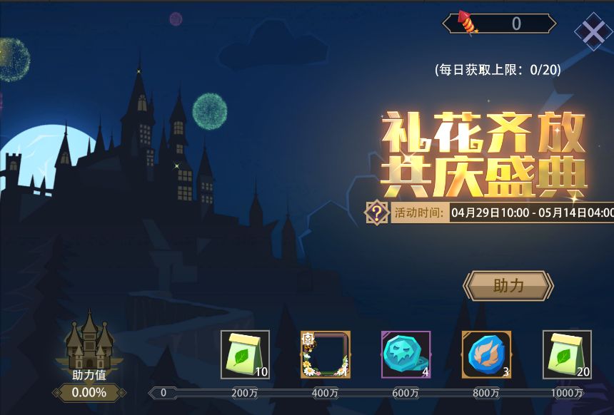 活动内容:活动期间,在[冒险模式/梦魇模式/冒险试炼场]下击败每一层的首领,必定会掉落随机数量的“礼花炮”。消耗“礼花炮”能获得“魔晶”奖励并增加随机繁荣值。当总繁荣值达到一定阶段时,全服玩家还能获得“有机花肥”、“魂石”、“限定头像框”等额外奖励。
