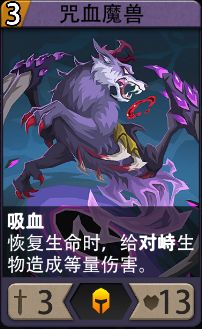 3费3攻13血。吸血。恢复生命时,给对峙生物造成等量伤害。
