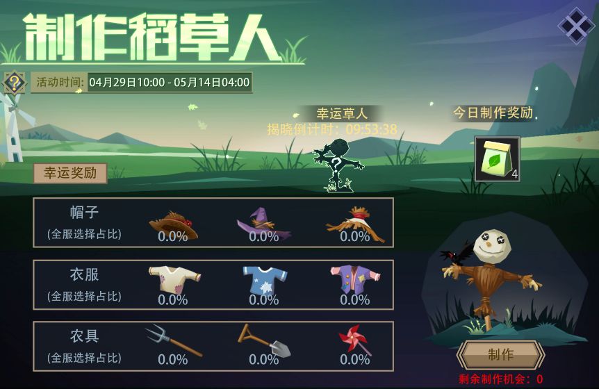 活动内容:活动期间,每日击败精英或首领后,可以制作自己专属的稻草人形象并获取每日制作奖励。每日24:00自动揭晓幸运稻草人,若你制作的稻草人与幸运稻草人有相似之处,还可以获取额外奖励。