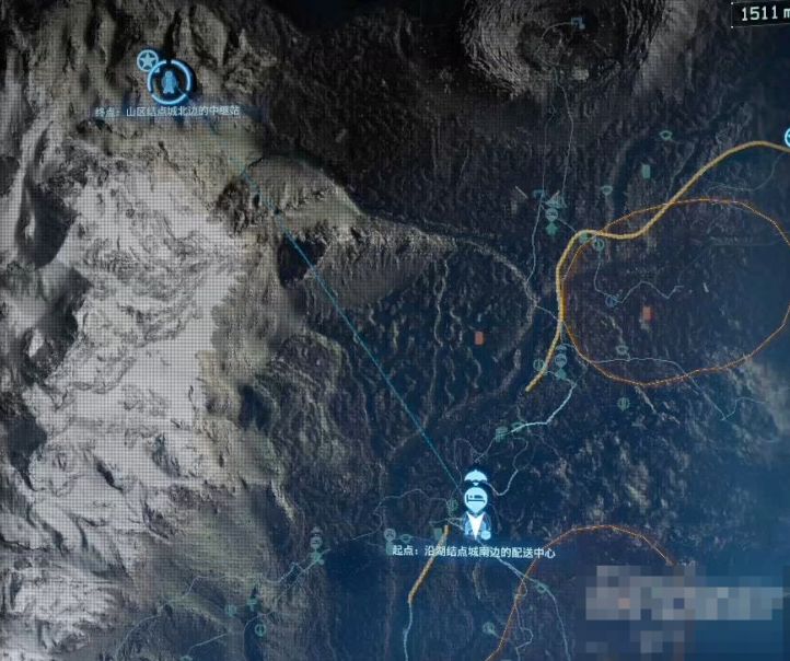 硬汉要山姆去山区结点城之前,先去沿湖结点城南边的配送中心。如果没什么重要的货物,建议直接从南部结点城传送过去。
