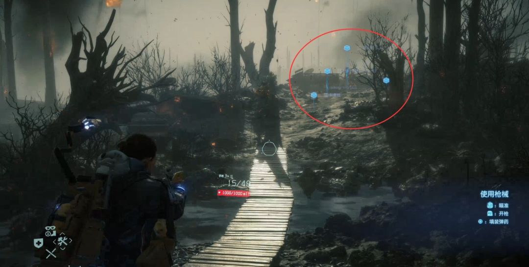 注意扫描仪,它总会指向敌人的方向,而且在靠近敌人时,摆动会更加频繁。
