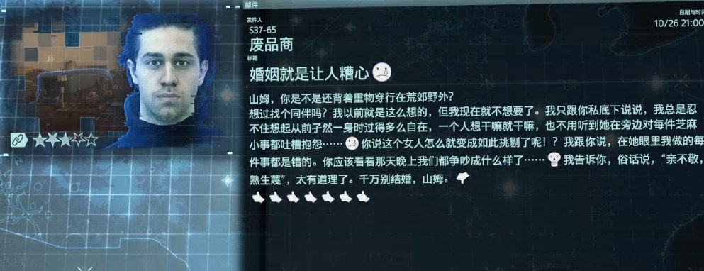 临行前,一个鬼鬼祟祟的布里吉斯职员交给山姆一件货物。(等玩到后面,你就知道他是谁了)