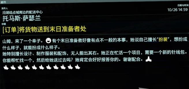 在配送中心接单时,提示此任务会奖励特殊服饰。