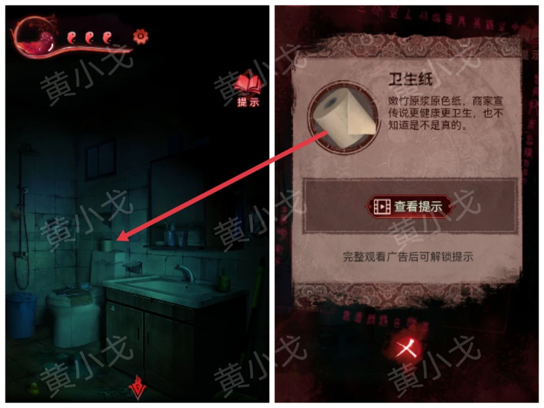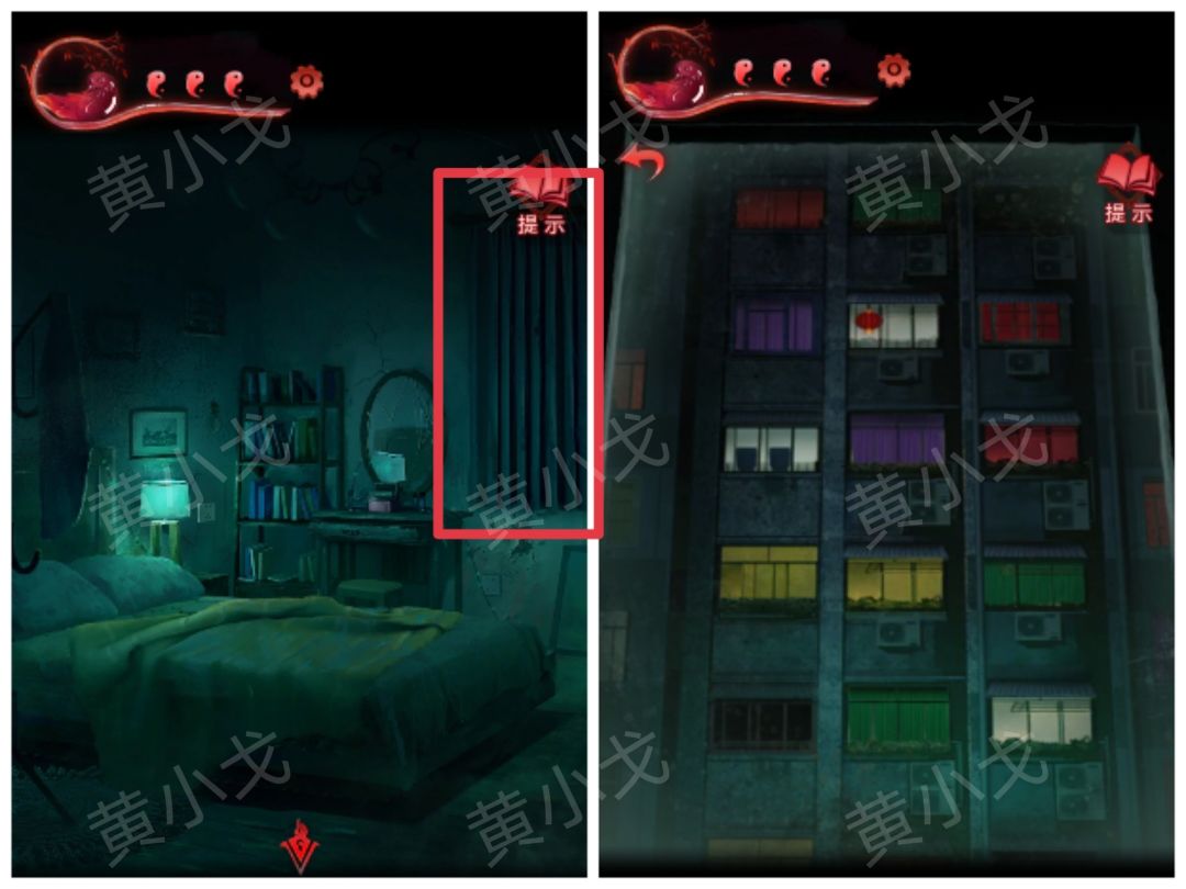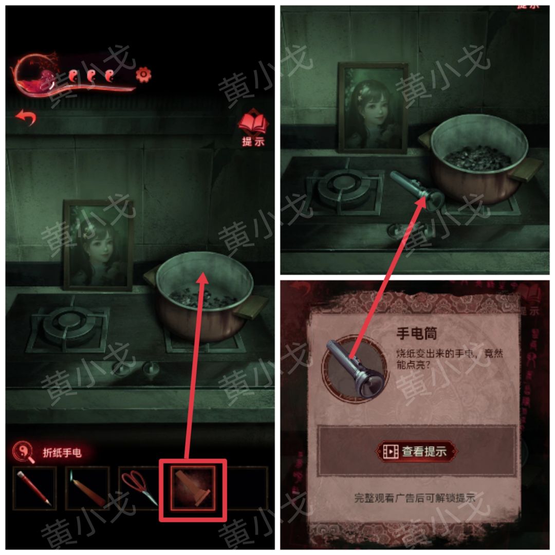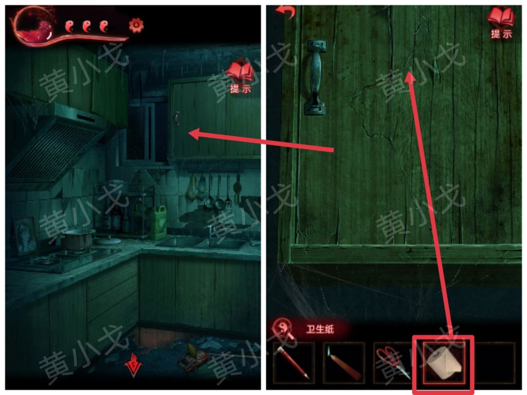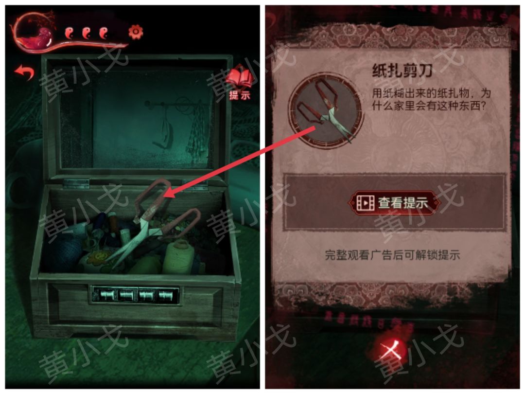35.用【一杯水】泼门旁边的咒符,用【剪刀】剪掉铃铛,出门,触发剧情