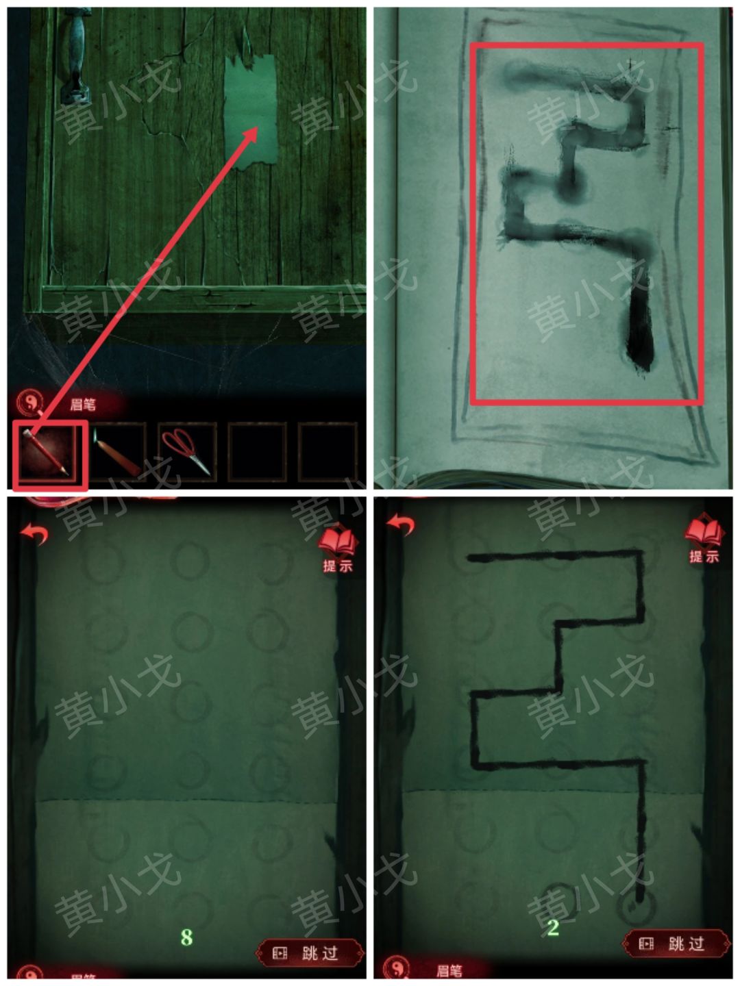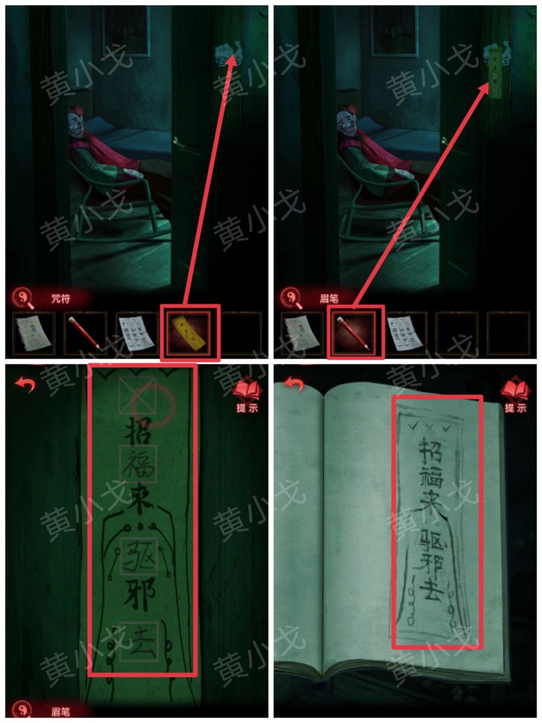 9.贴上【咒符】,根据《谈招阴之物》上的线索,用【眉笔】画符,进入书房