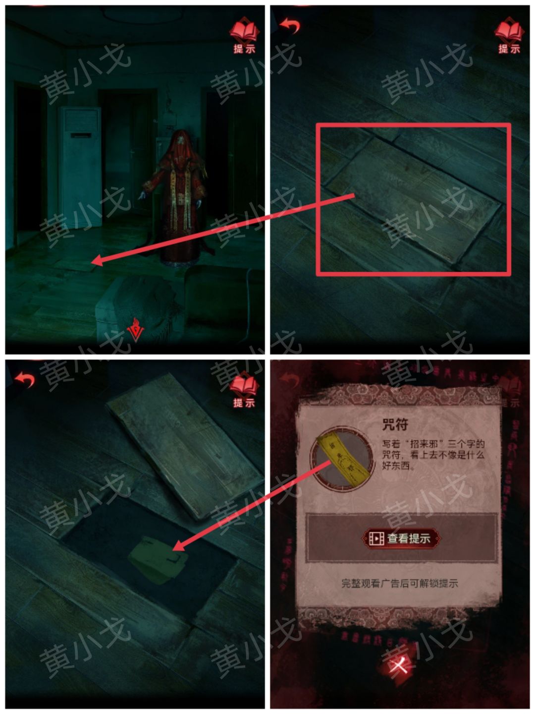 6.根据新娘纸人的提示打开地板暗格,获得【咒符】
