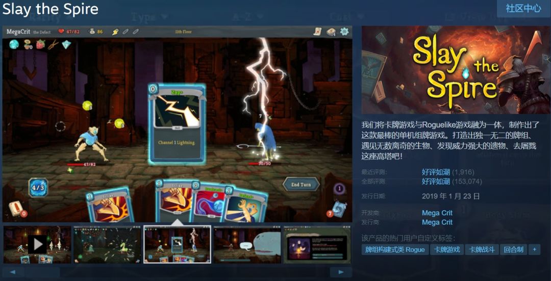 在如此用心的EA运营和开发下,2019年1月,开发三年半左右的《杀戮尖塔》终于推出1.0正式版,并获得了广大玩家和媒体的一致好评,并在海量玩家的口口相传中最终成为毋庸置疑的肉鸽卡牌NO.1。