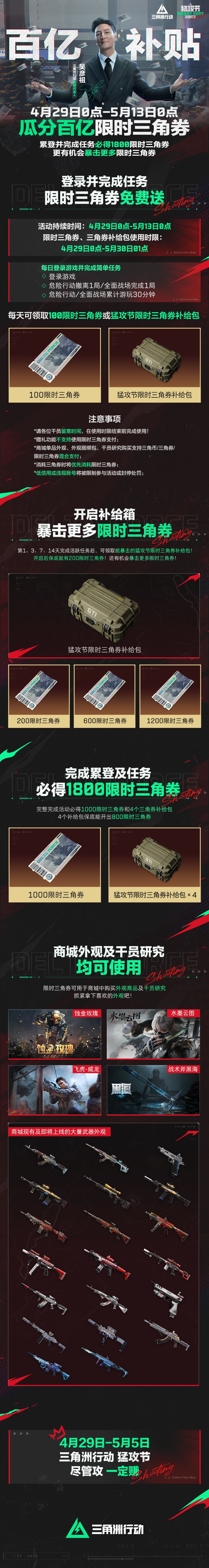 4月29日0点-5月13日0点,累登并完成任务,必得1800限时三角券!