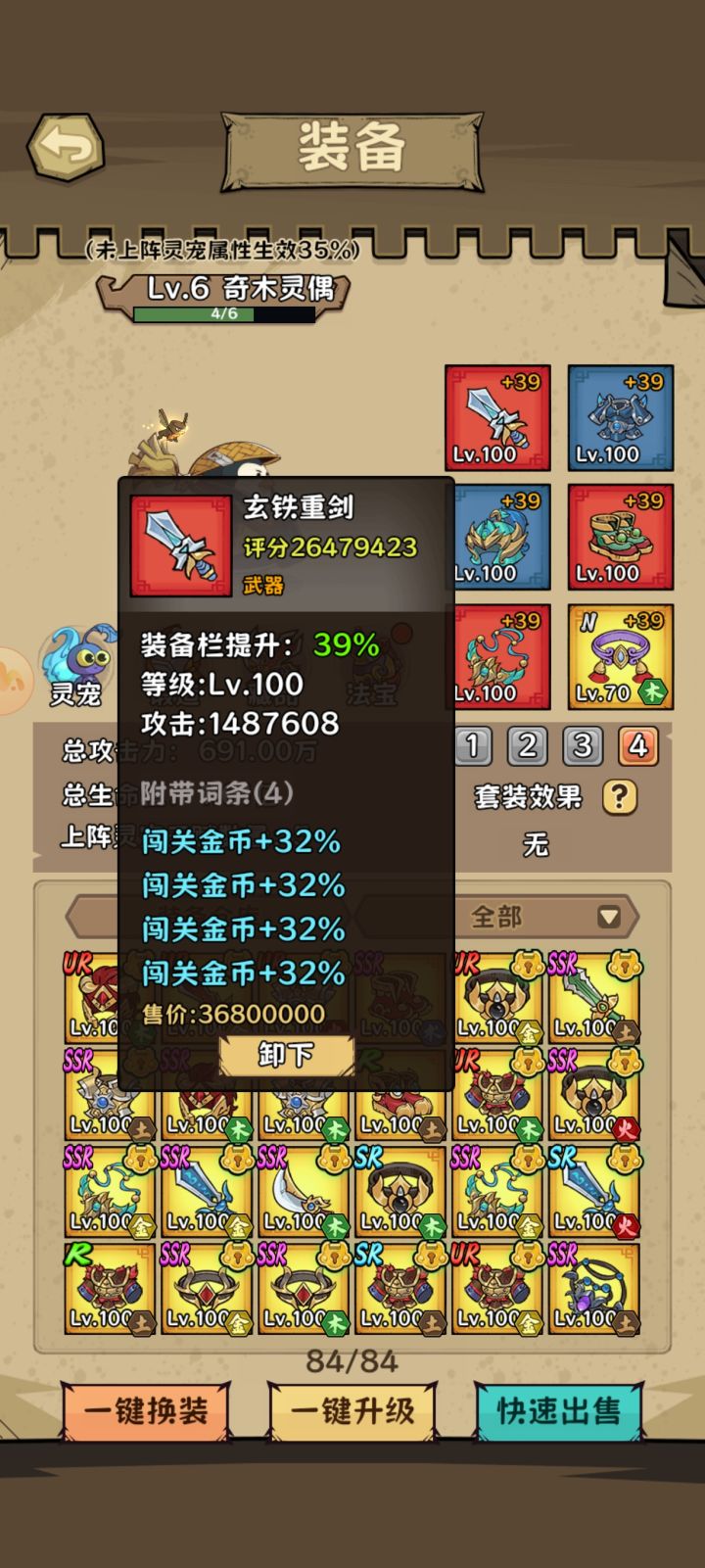 无论是挂机还是闯关,加成都是金币,所以我们算一下就知道。