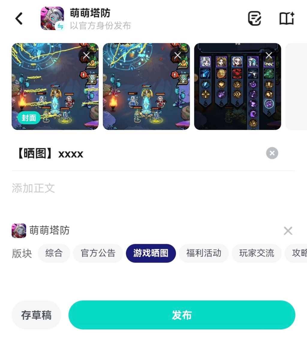 📍在论坛子版块【游戏晒图】中,发布《萌萌塔防》相关截图/视频内容