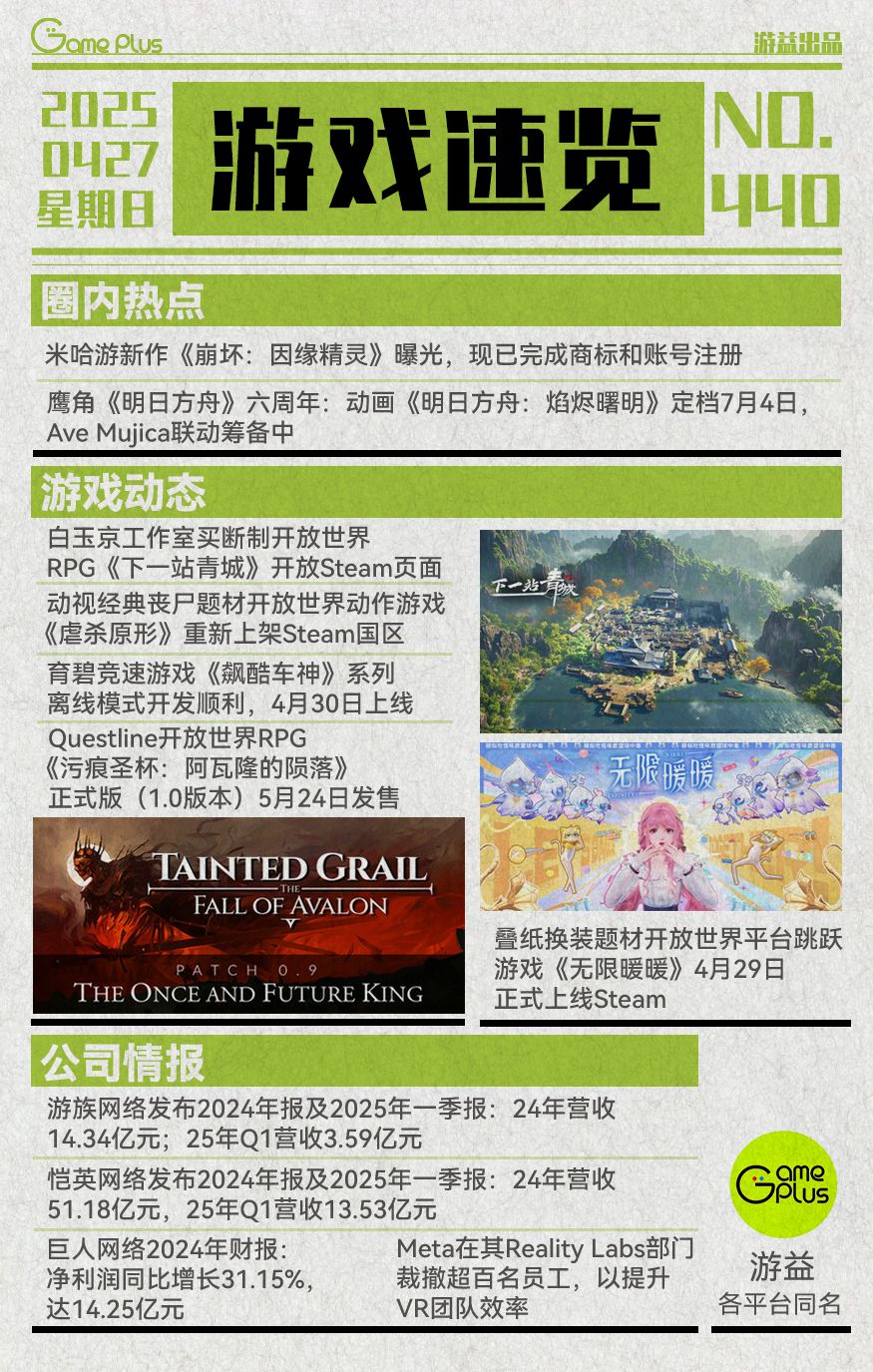 1.游族网络发布2024年报及2025年一季报:24年营收14.34亿元;25年Q1营收3.59亿元