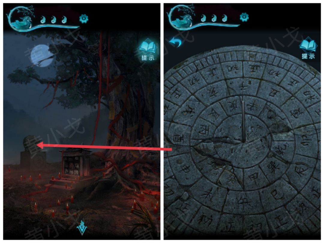 2.点击石台,注意上面的图案信息