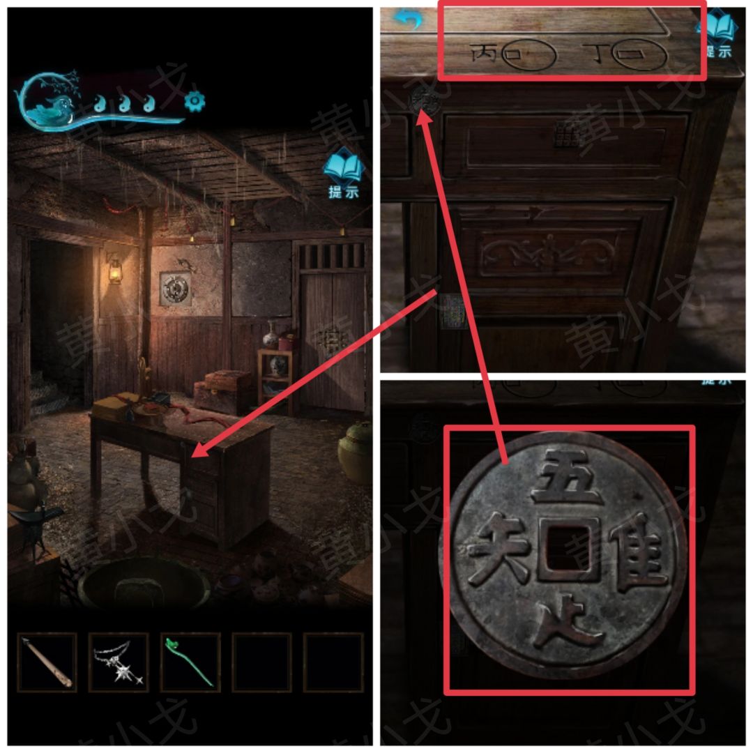18.点击桌子,查看嵌在桌子上的古钱