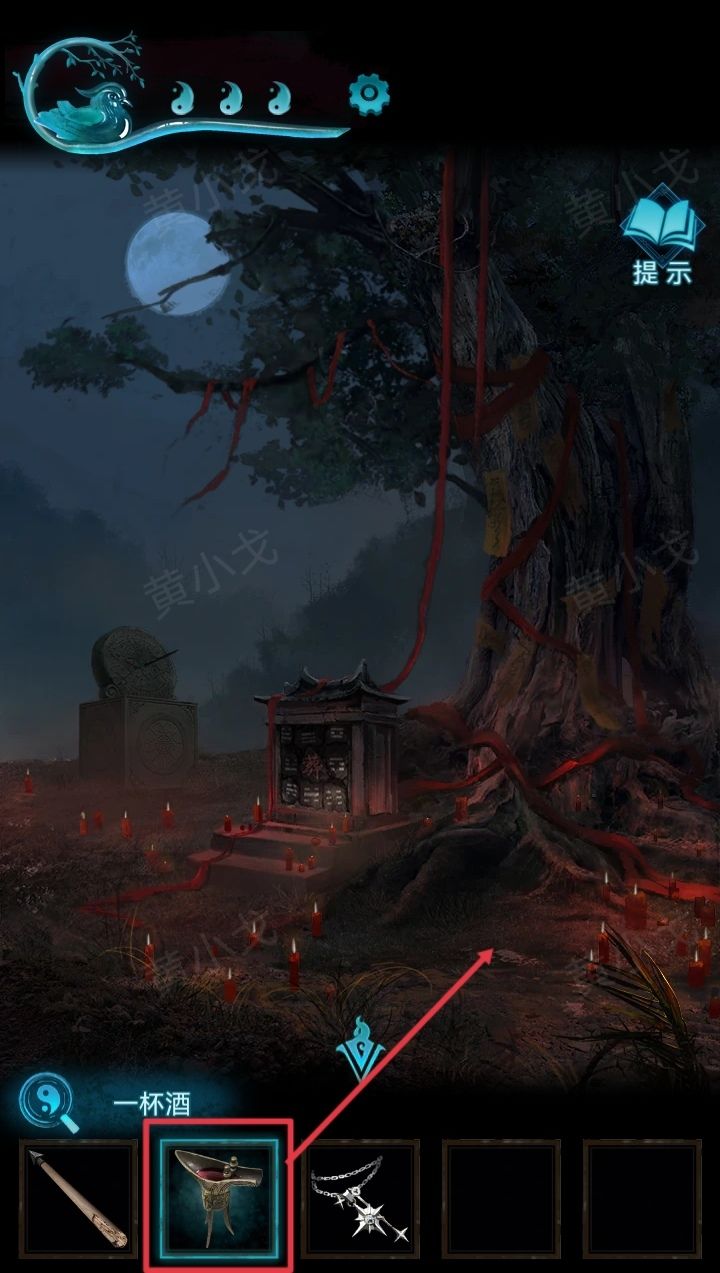 13.把【一杯酒】倒入土中,盒子出现