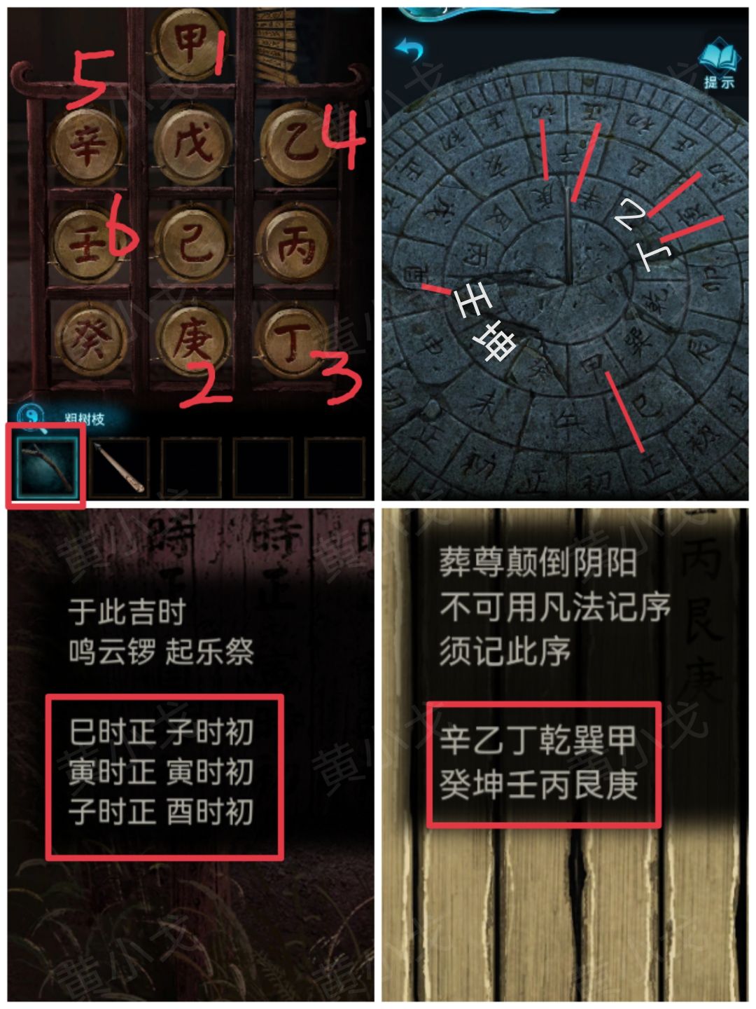 🔶公告牌上的线索:巳时正,子时初,寅时正,寅时初,子时正,酉时初