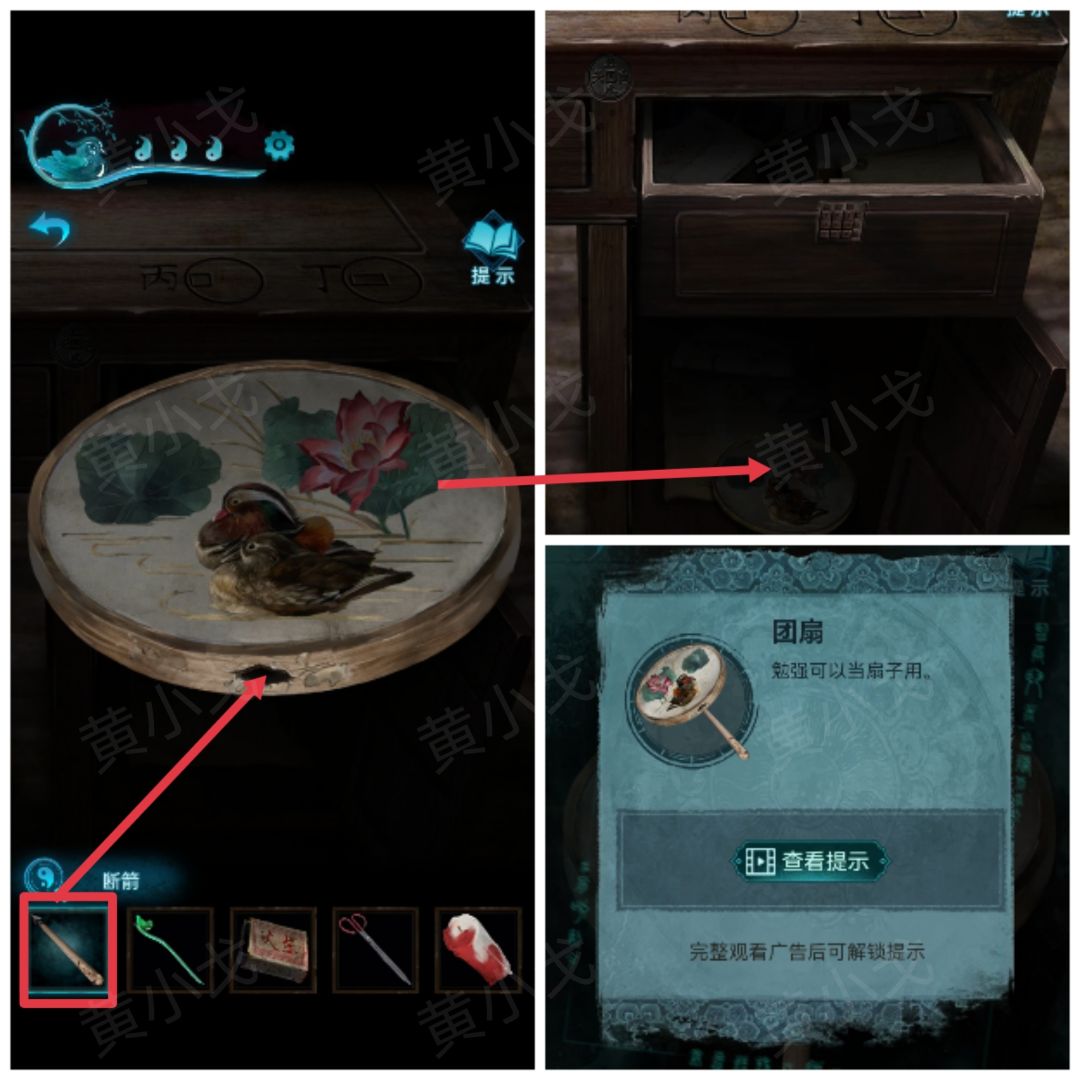 7.打开柜子,获得不全的团扇,插入【断箭】,获得【团扇】