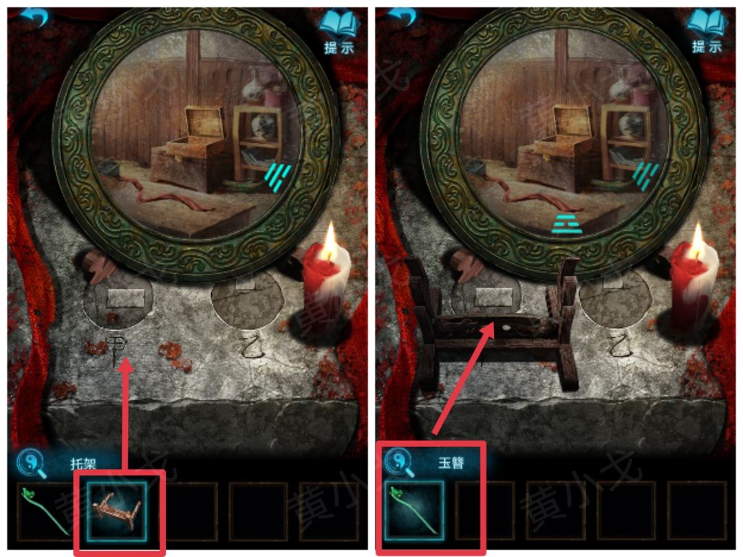 19.把【托架】放到古镜前,触发剧情,再把【玉簪】放到【托架】上,获得线索