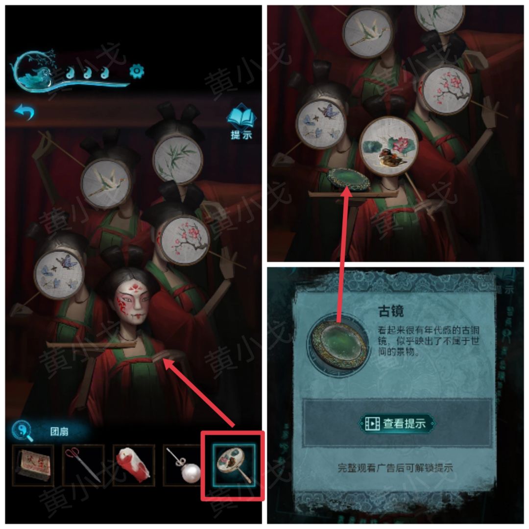 8.点击戏台上的木偶,把【团扇】放入为首木偶的手中,获得【古镜】