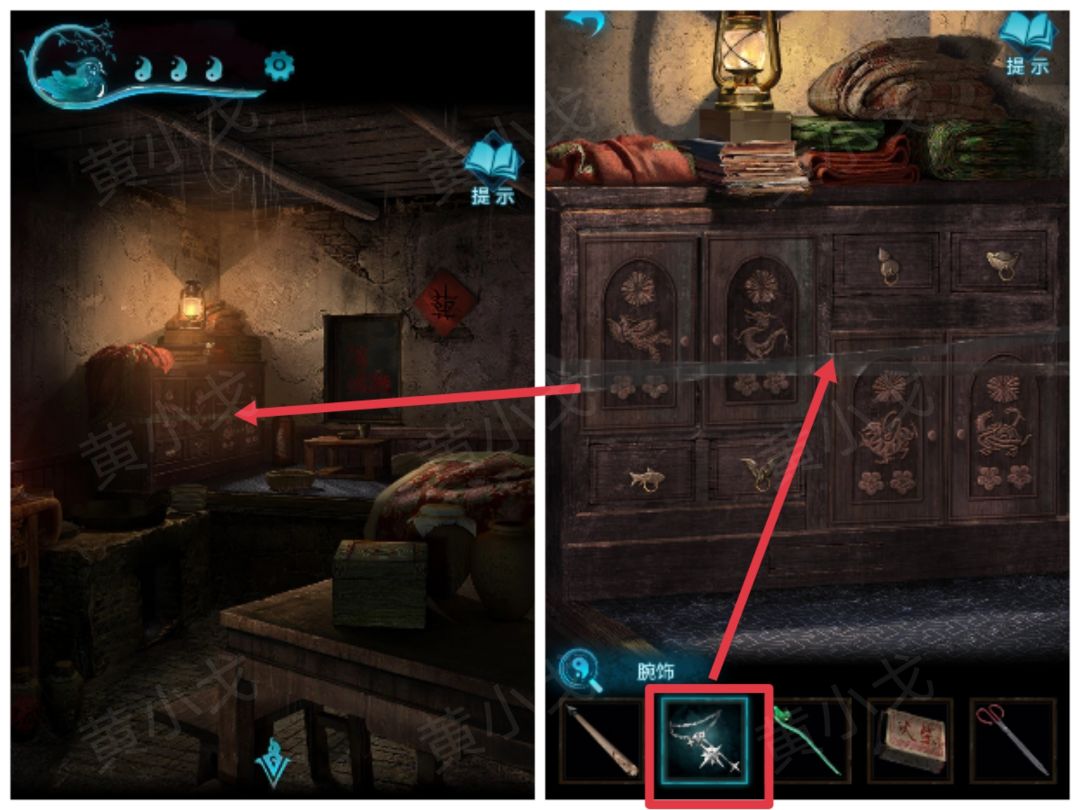 1.点击柜子,用【腕饰】割开缠在柜门上的胶带