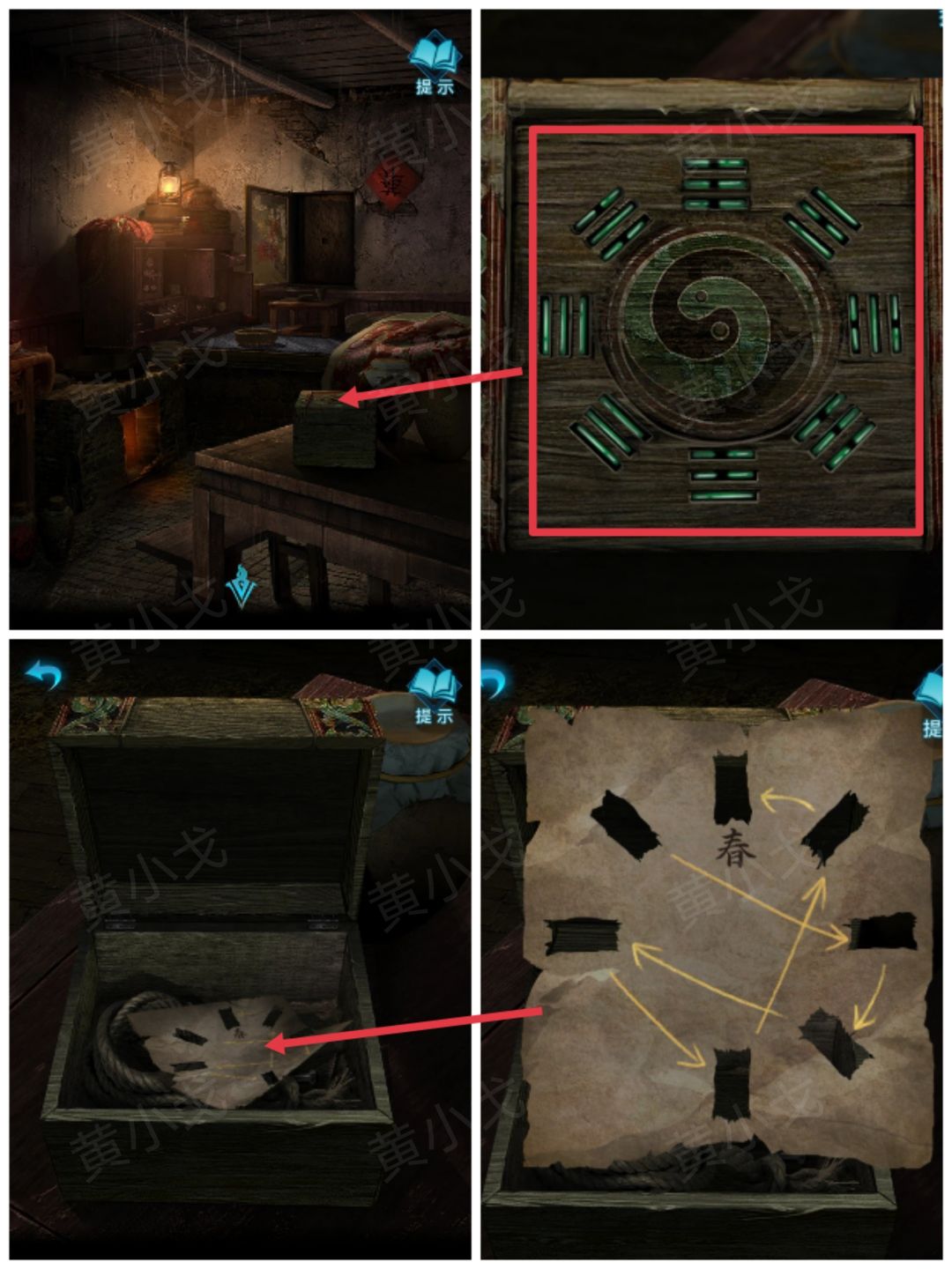 11.点击神龛,根据居魂镜中的线索,按顺序点击八卦图案
