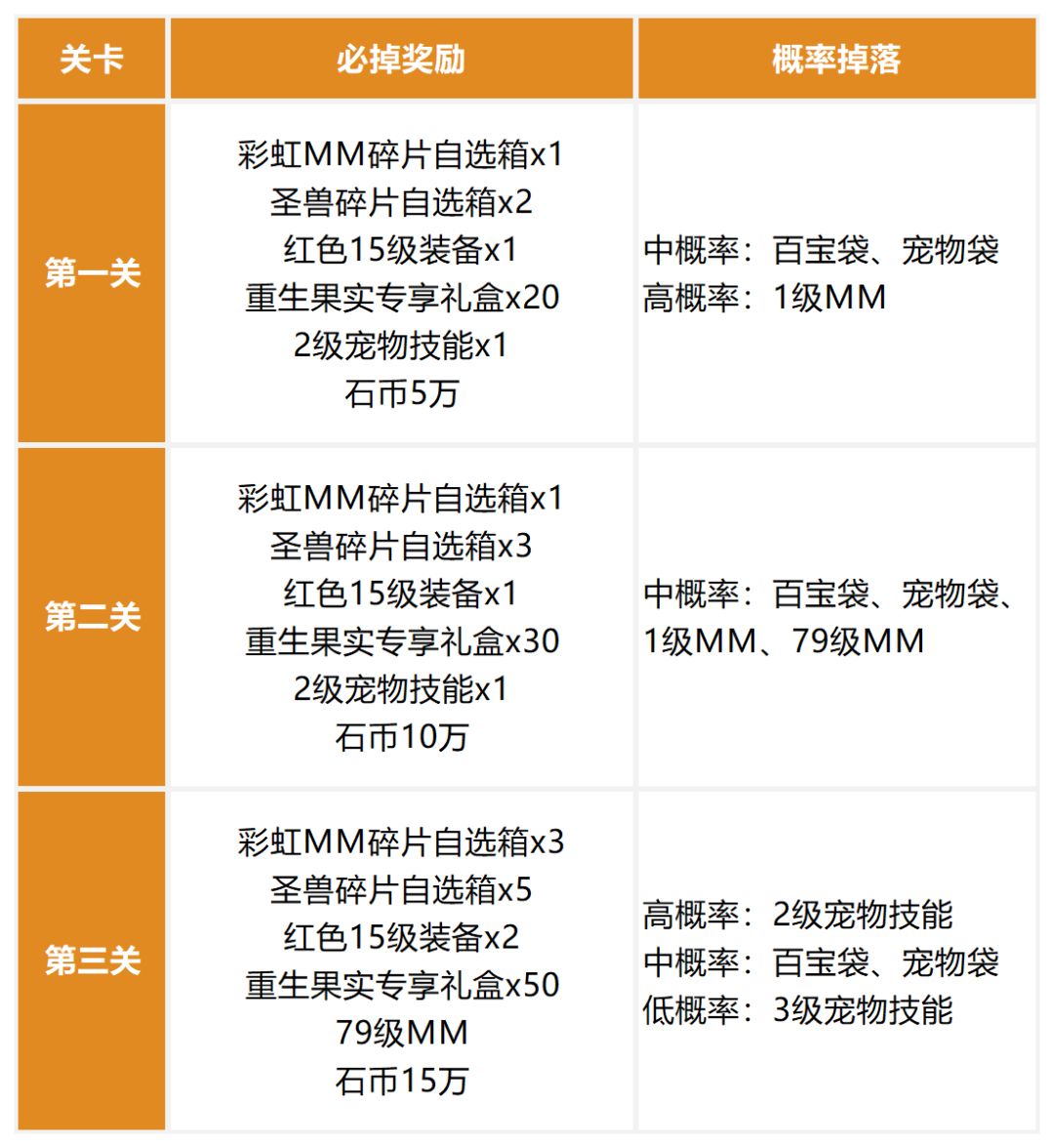 7. 本层除小怪外均无属性伤害,任意颜色坐骑/战宠都可以上场。