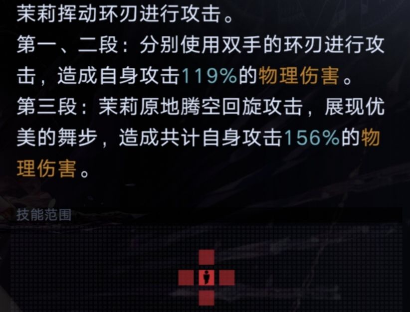 3x4的攻击范围,强化状态下可以联动被动一,加快附加“流血”的速度