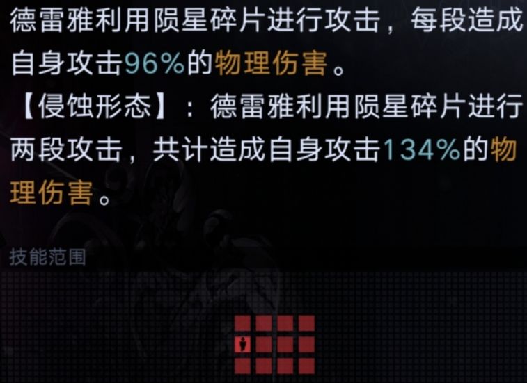 简言之,德雷雅造成一次可选九宫格范围的伤害;强化状态下释放大招会额外结算一次流血伤害;
