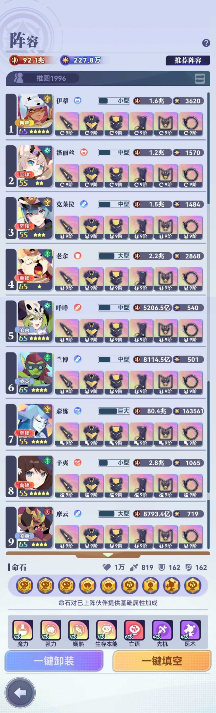 冒险关卡更新至1200已经有两个月了,其中只有1050和1196两个卡关点,而推图阵容也被优化的差不多了