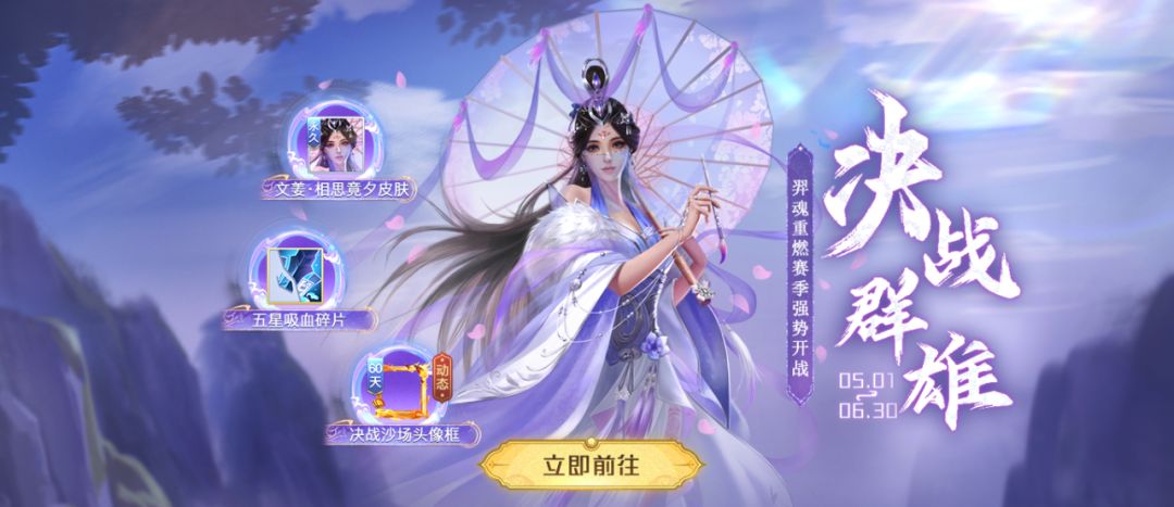 5月1日征讨四方新赛季同步开启。解锁凯旋礼包可立即获得1000征讨经验、10个吴三桂元神以及征讨限定头像框。加入挑战,还可领取吴三桂·征战永久皮肤等更多奖励!
