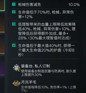 词条:血量越少,异常伤害越高=血量越少,元素伤害越高>普通敌人伤害>精英=上位者。毕业词条:血量越少,异常伤害越高和血量越少,元素伤害越高,2个词条都是金色,➕任意一个金伤害词条。