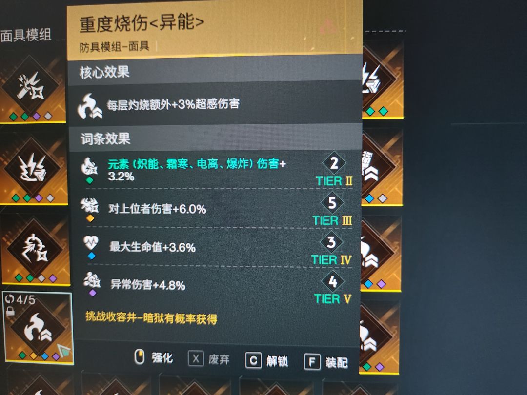 词条优先:炽能属性伤害>灼烧伤害>灼烧触发概率>普通敌人伤害>精英伤害=上位者(优先只是词条强弱和前期优先程度)