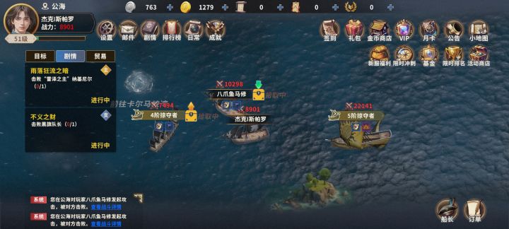 3.公海是获得图纸和材料的重要地点,正式打之前先找个战力比自己高的撞上去,如2图,会有10分钟保护,这期间不能打别人不然就没了,保护卡好可以放心钓鱼,可点头像查看保护时间如3图