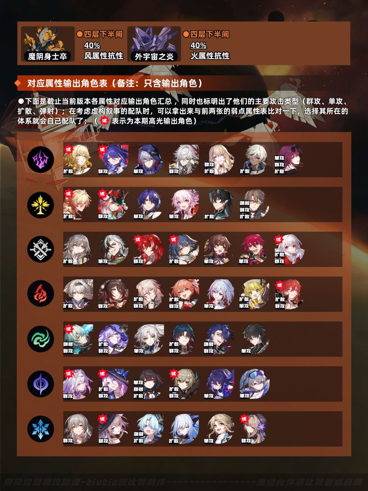 本期虚构叙事难度不高,选取适配于buff和敌方机制的角色很容易就能拿满奖励;环境上需特别注意部分敌人的机制(如要选取合适的生存来解控或触发效果:次蛰虫的控制、小怪的侵蚀机制等,需优先考虑能提供解控的治疗角色);大buff主要利好群攻类战技输出角色,小buff分别涉及大招、烧血、击破三方面,有这三方面机制的主C可优先考虑,其中遐蝶、大黑塔、银枝得益于本期buff,他们主C的配队上下半均能取得不错的分数;