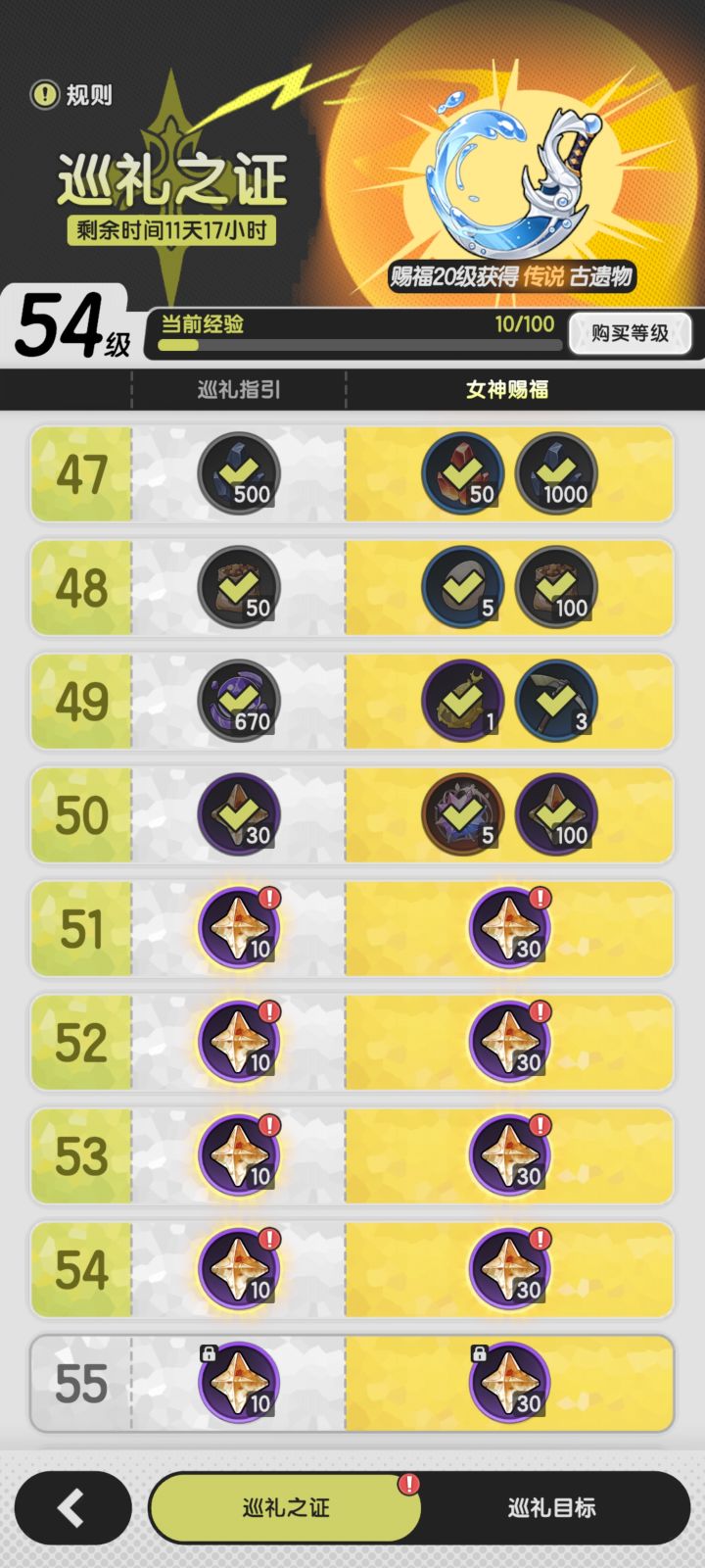 巡礼之证,51-70无法领取奖励,点击没有反应