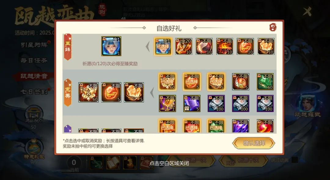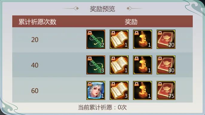 累计祈愿达到20、40、60次,还可额外获得以上奖励。