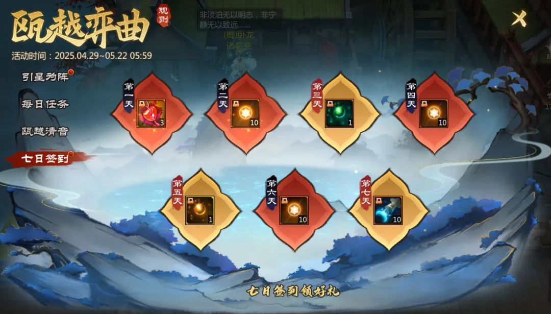 奖励加码!!现在完成每周任务即可轻松获得抽奖道具【竹笛】,可用于在下方<瓯越清音>活动中抽取至臻大礼!让梦梦看看,哪些欧皇仙术师又一发入魂啦?
