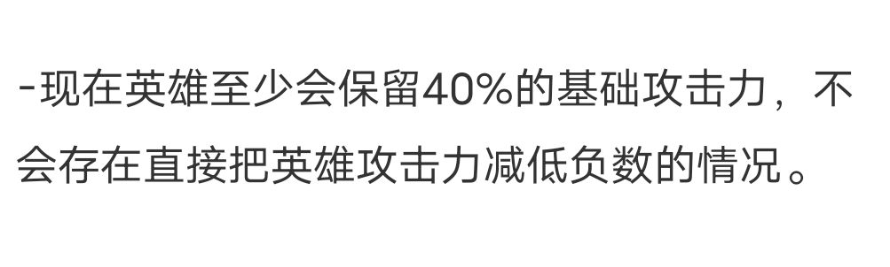 英雄至少攻击可以保留40%基础攻击力,那么我们防御就不当人了,直接被消成负数。防御本来成长就比攻击成长低,还各种无视防御,无视魔抗,防御弱体等等,强烈要求防御属性最少也要保留40%基础属性,不被各种负面削弱。