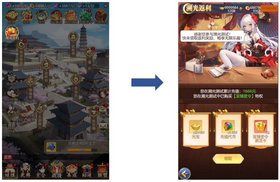 在溯光测试中参与过充值的主公,可以在游戏正式上线后领取返利礼包。