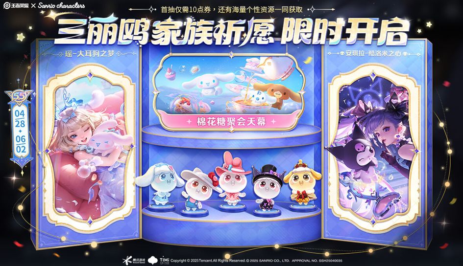 祈愿福利:首次进入活动,可领取三丽鸥祈愿币×5(即首抽仅需10点券)。