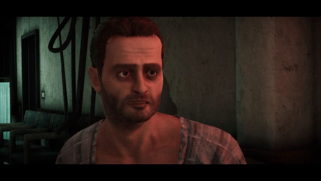 医院里当然到处都是丧尸,瑞克必须利用一些非常基础的机制逃出生天,这些机制包括推动、潜行、治疗,基本上是每个第三人称后末日恐怖游戏的标配,但是做得更差劲。丧尸当然都非常没脑子,这符合它们的设定,但这些丧尸是所有游戏敌人中最没用的那一档。丧尸总共只有大约三种模型,它们还会卡在墙里、穿模穿出天花板、互相碰撞,它们构成的威胁就和地毯上的一只湿袜子差不多:看着烦,不美观,但除此之外基本可以忽略。
