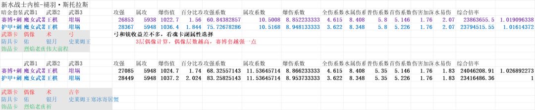 注:根据自身情况选择适合自己的搭配(暗金类别、魂卡属性)