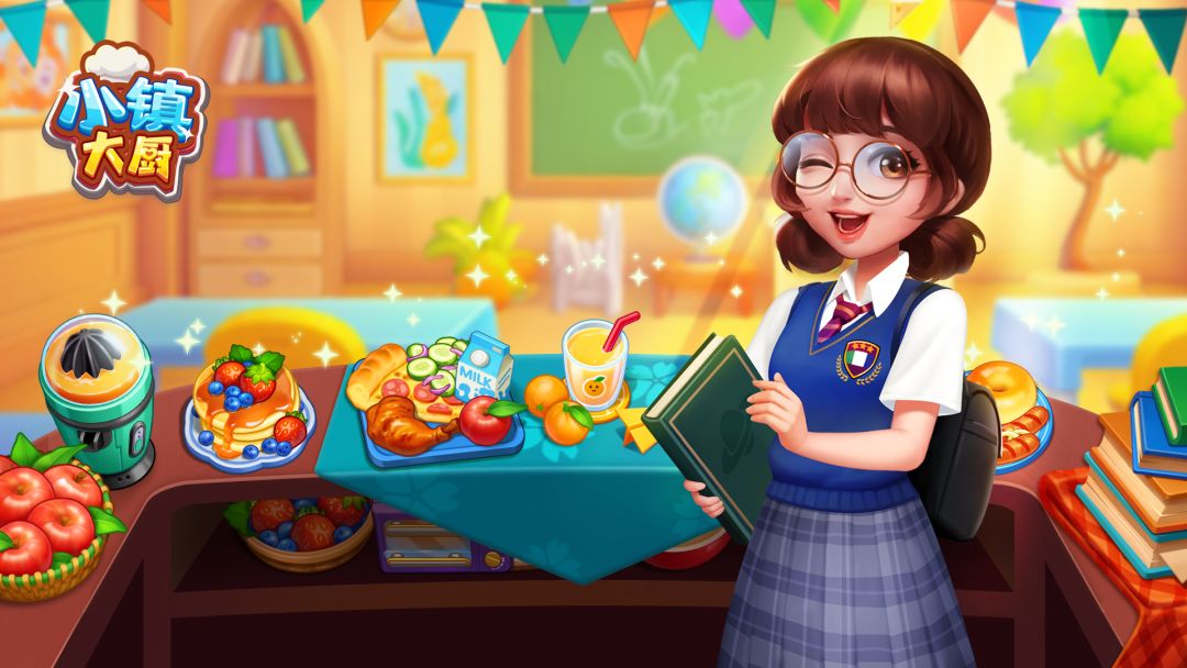 铃~铃~铃~下课铃声响,食堂准点开!香香软软的松饼搭配水果、经典炸热狗和酥香大鸡腿,更多美味料理等你来解锁!