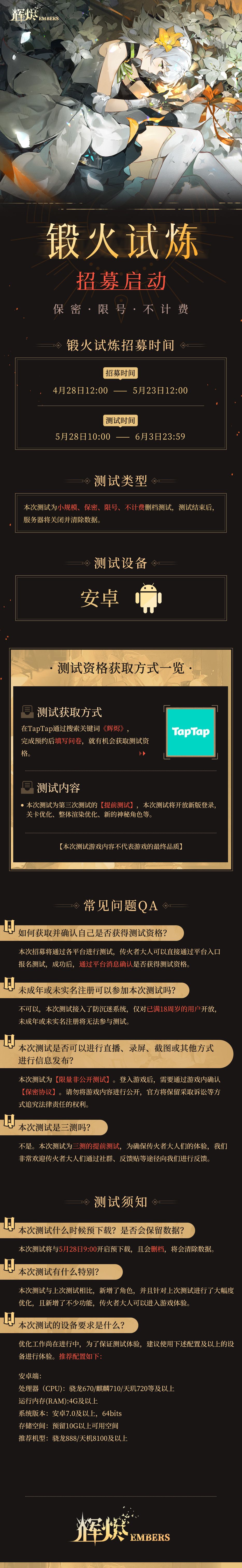 《辉烬》「锻火试炼」招募开启