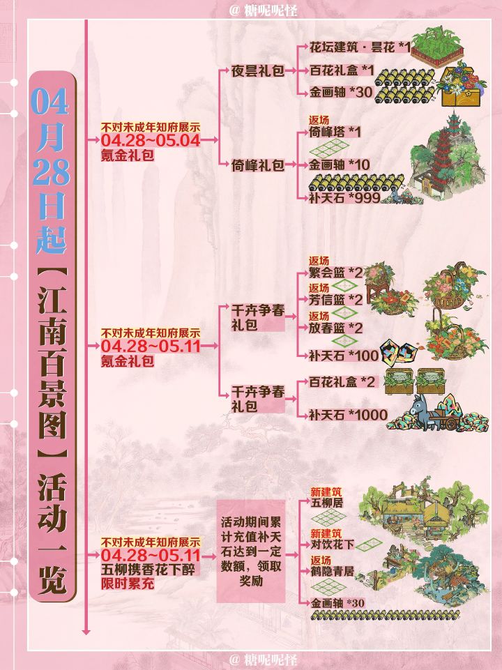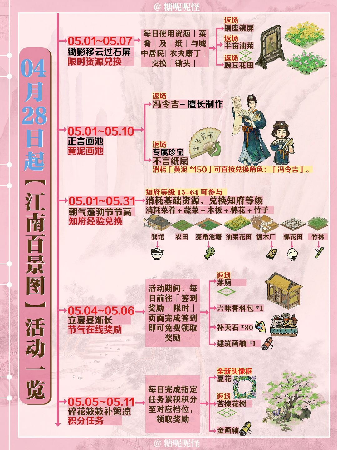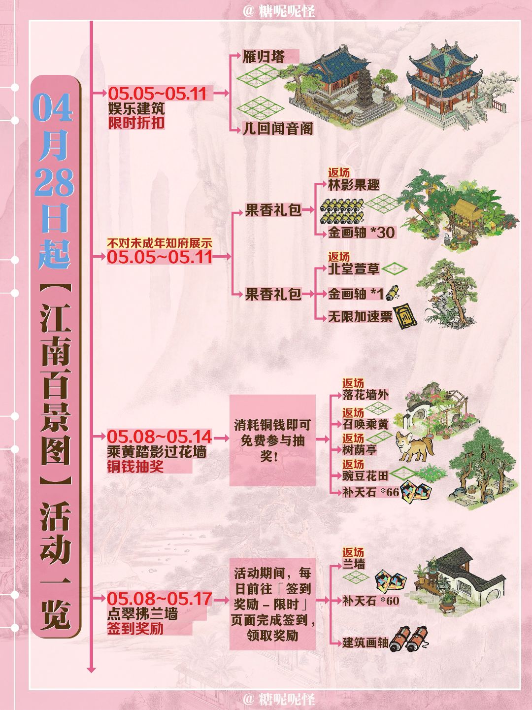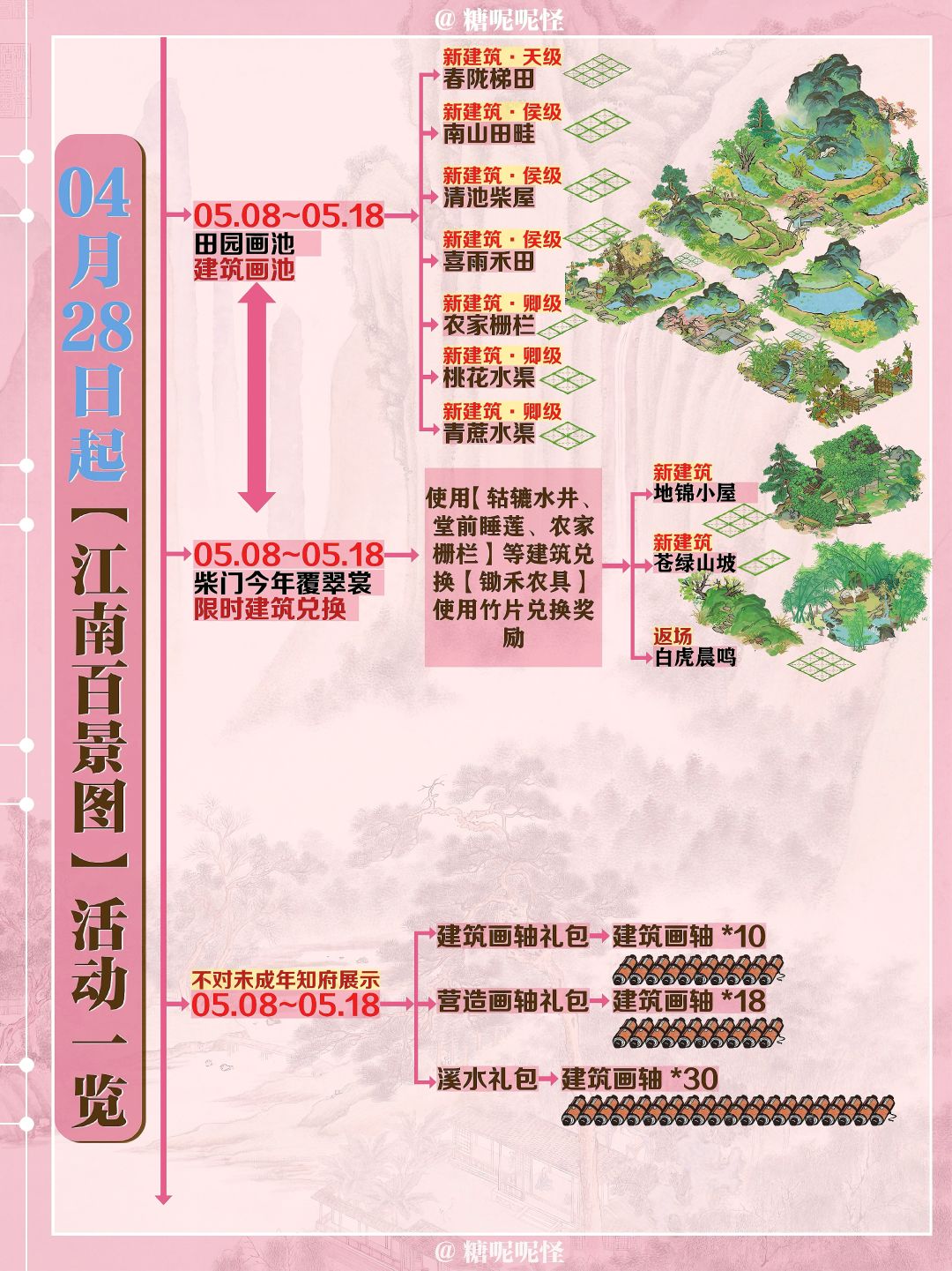 3️⃣新建筑:五柳居|枫落棋盘|对饮花下|幽篁竹居|地锦小屋|苍绿山坡